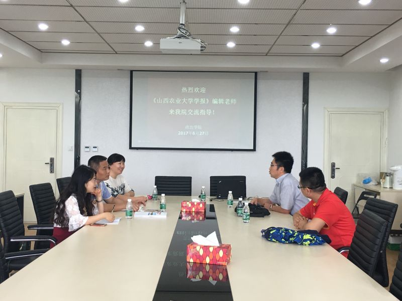 2017年6月27日,山西农业大学学报(社会科学版)主编赵赟一行来政治学院考察交流,政治学院副院长葛笑如以及概论教研室主任、教师代表一同出席座谈交流。